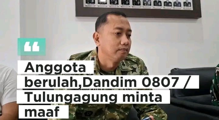 Tulungagung – INDOSUARANEWS ,9 Maret 2026 Dandim 0807 Tulungagung, Letkol Arh Hanny Galih Satrio, mengambil langkah ksatria dengan mengeluarkan permohonan maaf terbuka kepada masyarakat, menyusul penangkapan oknum anggota TNI AD yang terlibat dalam aksi pencurian di minimarket.