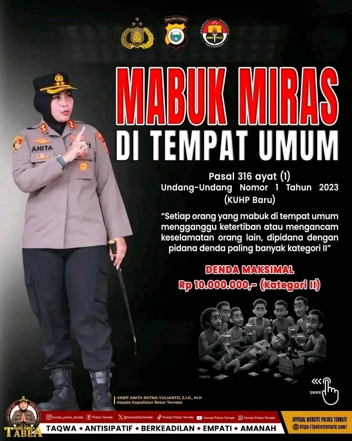 Tulungagung, indosuaranews.my.id ||20 Januari 2026 — Undang-Undang Nomor 1 Tahun 2023 tentang Kitab Undang-Undang Hukum Pidana (KUHP) yang baru menyertakan ketentuan yang lebih tegas bagi masyarakat yang kedapatan mabuk di tempat umum.